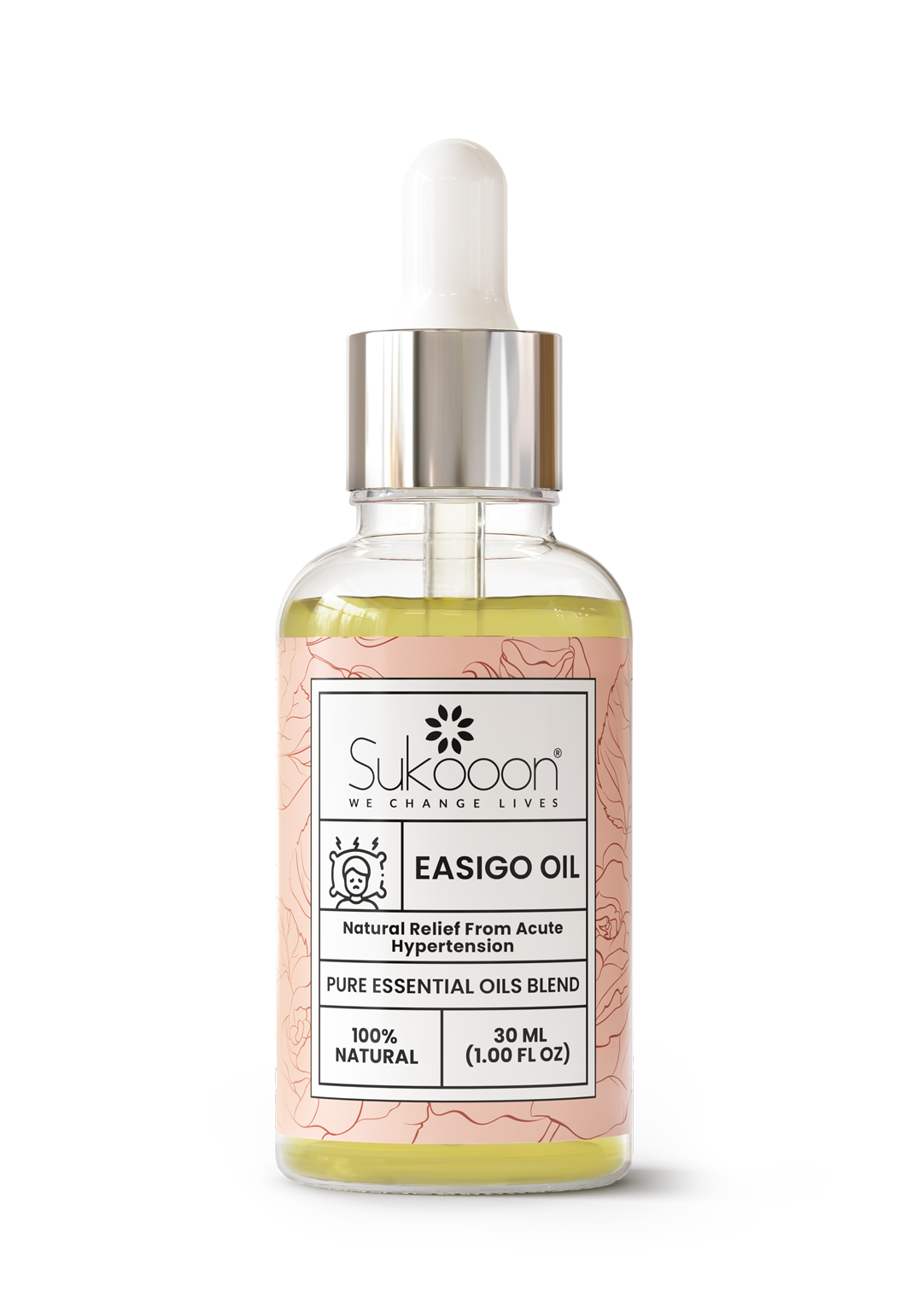 Sukooon Easigo Oil is a carefully crafted essential oil blend developed to support healthy blood pressure management. Formulated with Lavender, Valerian, Bergamot, Rose, Clary Sage, Frankincense, and Citrus oils, balanced in olive oil, this Unani-inspired remedy helps the body relax naturally a key step in maintaining balanced blood pressure levels.